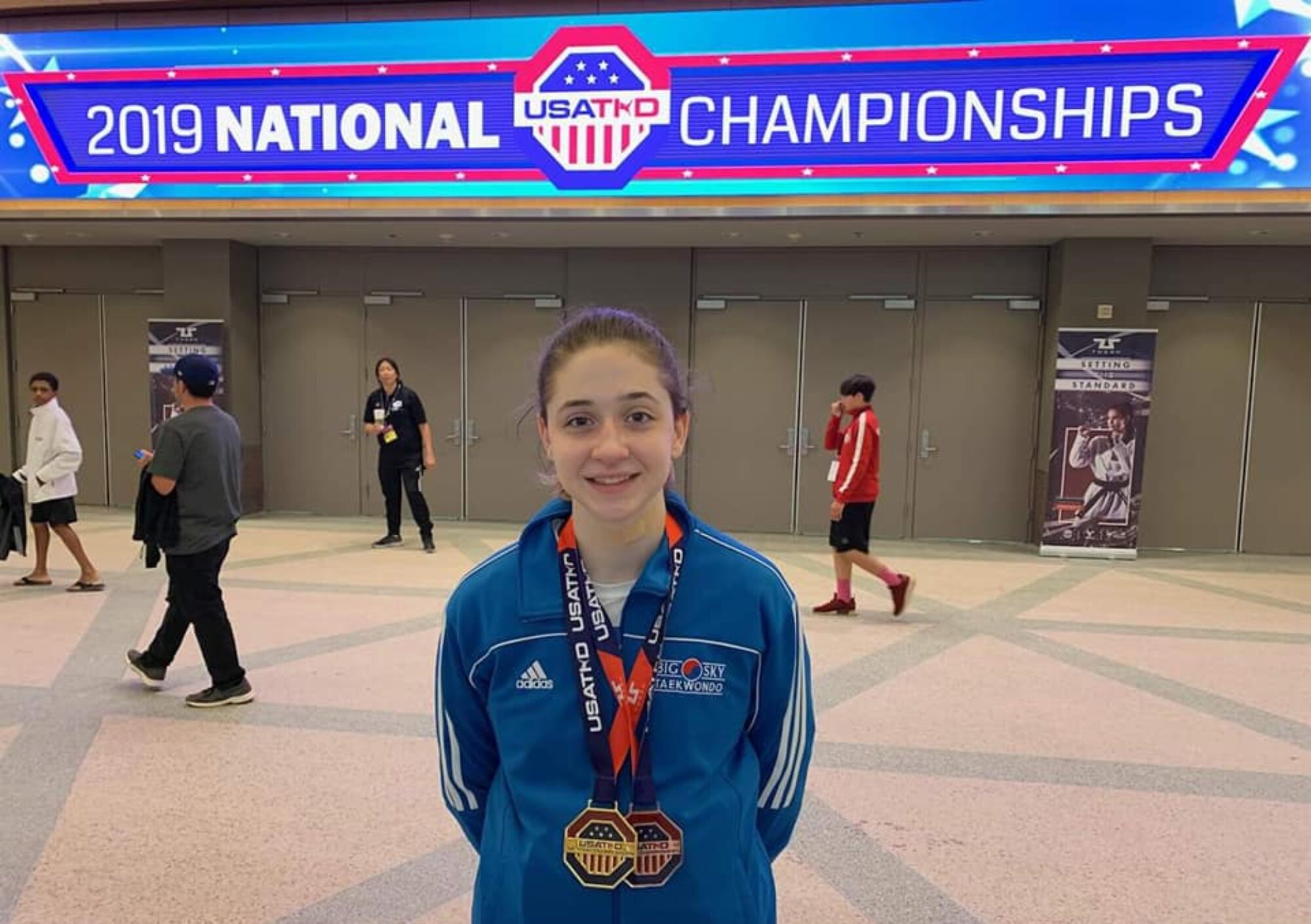 Once again, words cannot express how proud I am of our competitors and students at Big Sky. Also, I am extremely grateful to all my parents. What a whirlwind of events this past week… It has been a long but exciting week. It began with Stephanie competing at the USA Taekwondo National Championships in Minneapolis, MN last weekend where she won the Gold Medal (National Champion) in sparring and Bronze Medal (3rd place) in form. Then she met her teammates at the AAU Taekwondo National Championships in Fort Lauderdale, FL where she captured the Silver Medal (2nd Place) in sparring. She had amazing fights each time but only had two minutes to rest between the semifinal match and the final. She was a little tired